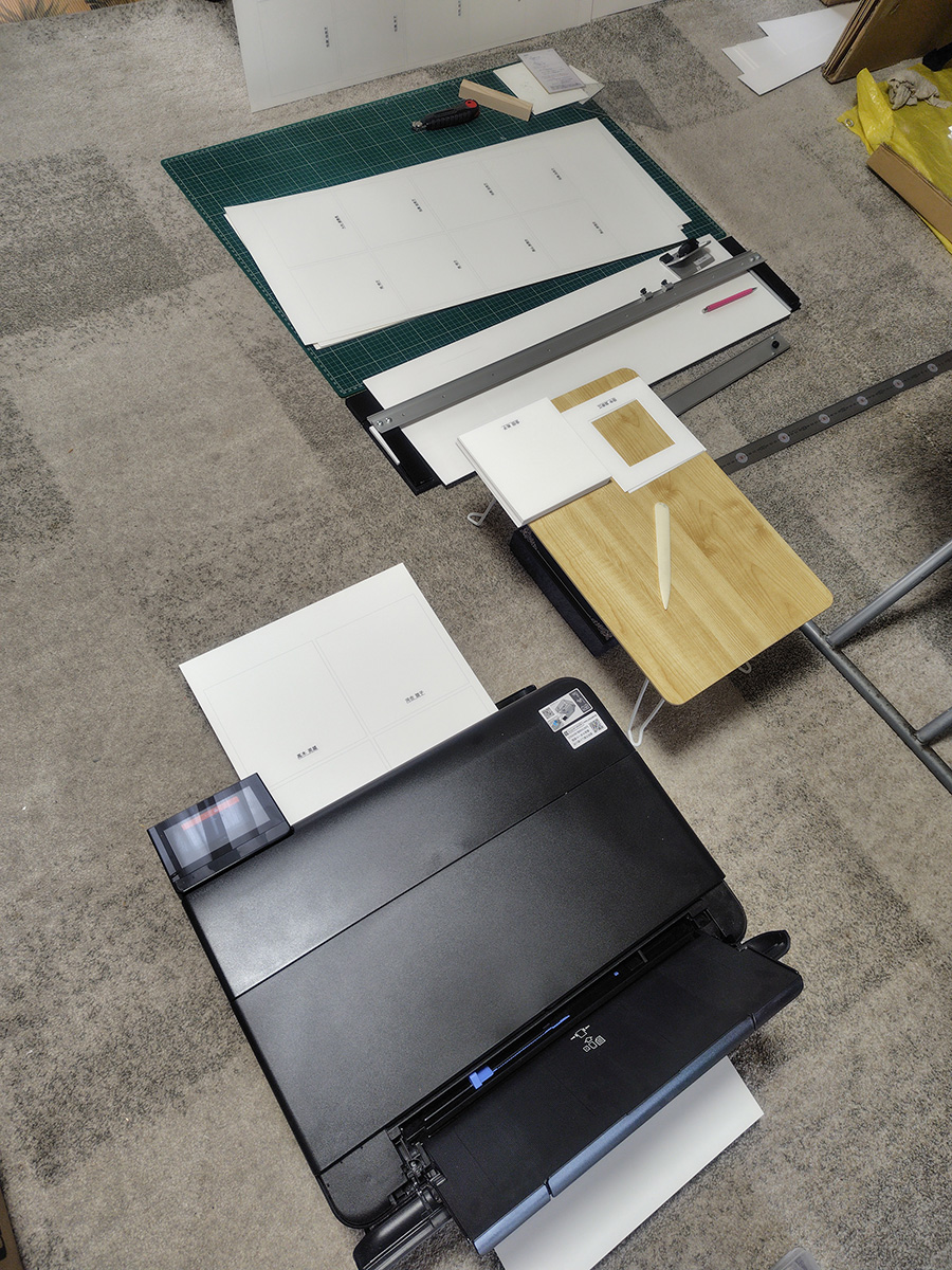 同時に、9cm角のマット約180枚に出展者名を印刷。
