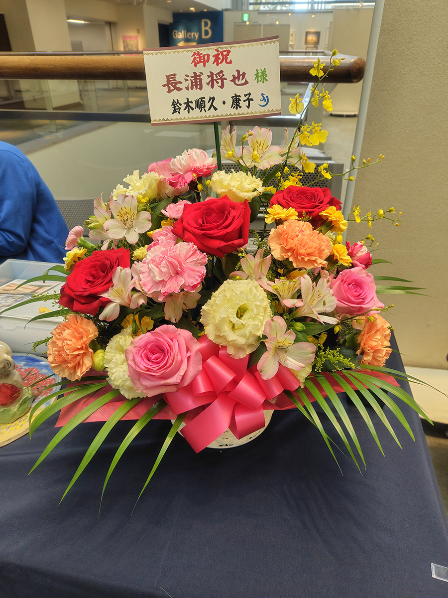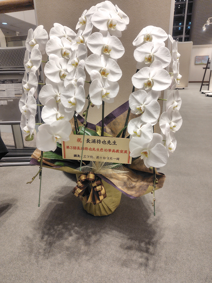 今回の教室展開催に、多くのお祝いのお花をいただきました。