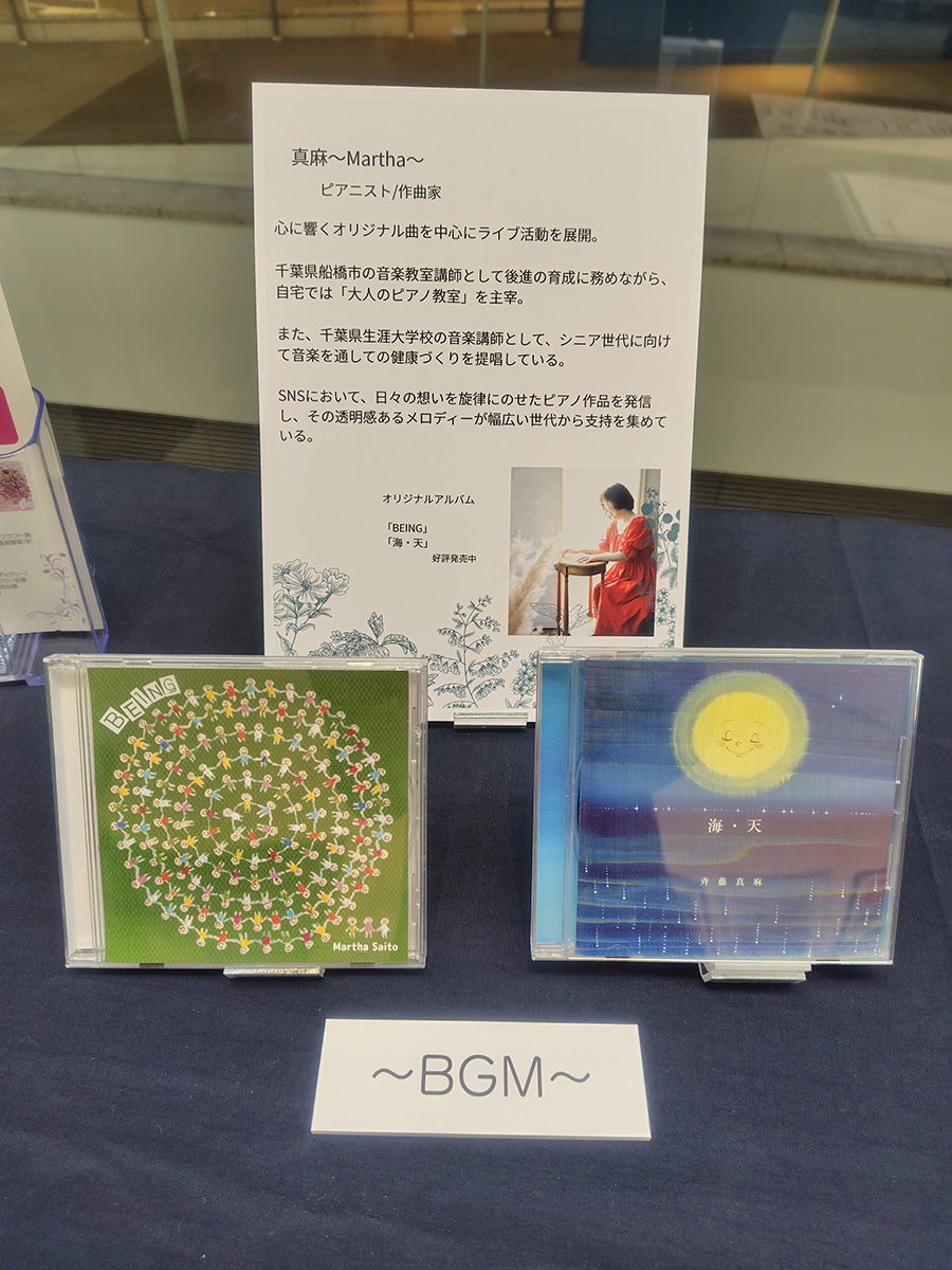 今回、会場では、音楽家・斉藤真麻さんのピアノ楽曲を流しています。